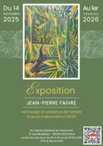 Découvrez l'exposition de Jean-Pierre Faivre Une exposition amenée et installée par Véronique Dalle, de la Galerie Collégiale – Lille. "La force de Jean-Pierre Faivre est bien de nous transporter d’un monde à l’autre, d’ici à là-bas, et même de notre expérience du périssable à l’orée du mystère de la vie qui sourd en permanence." Jean-Paul Deremble Vernissage le jeudi 4 décembre à 18h30