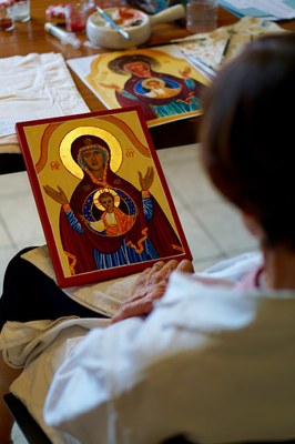 L'apprentissage de l'écriture de l'icône est un travail sérieux et appliqué, calme et patient, précis. C'est dans le respect des autres, dans la méditation et la prière personnelle que se déroule cette session, rythmée par les offices du centre et l'Eucharistie quotidienne.